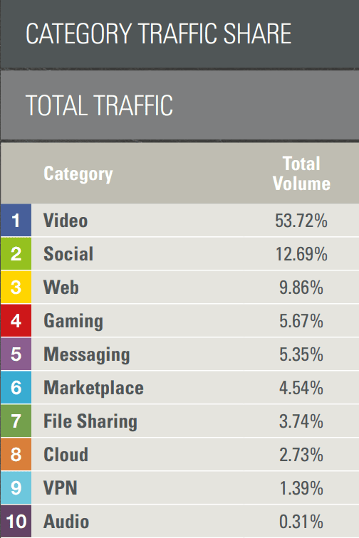 5. In 2021, streaming video dominated internet bandwidth, accounting for 53.72%. (Sandvine)