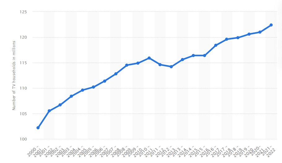 7. There are currently 122.4 million households with TVs in the US. (Statista)
