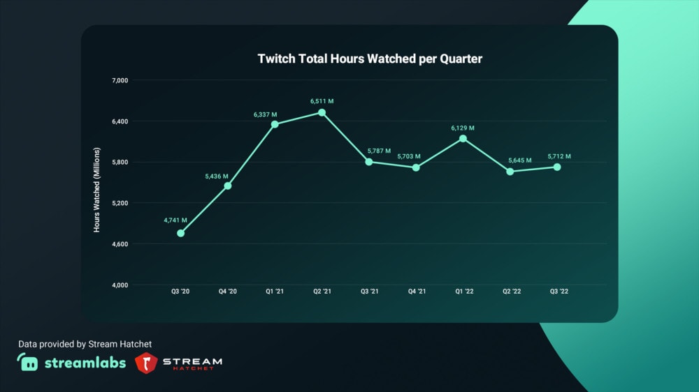 5. Viewers watched 5.7 billion hours of live streams on Twitch in Q3, up from 5.6 billion hours in the previous quarter. (Streamlabs)