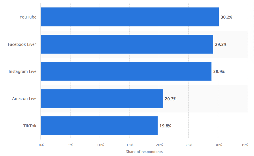 3. Social media networks are the most popular platforms for livestream e-commerce in the United States, i.e., shopping during streaming. (Statista)