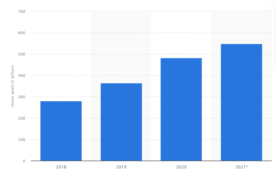 8. In 2020, global users spent approximately 482.5 billion hours on live streaming apps.