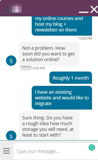 I got responses from both the web hosting platforms within seconds of posting my query. At Liquid Web, I asked about server clusters, how they work, and the agent asked me a couple of follow-up questions concerning my hosting requirements.