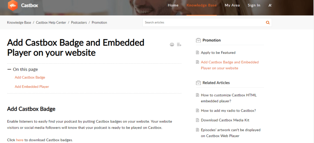 Add the badge by downloading the zip file. To embed the Castbox player, copy the source code of your podcast and use it on your website.