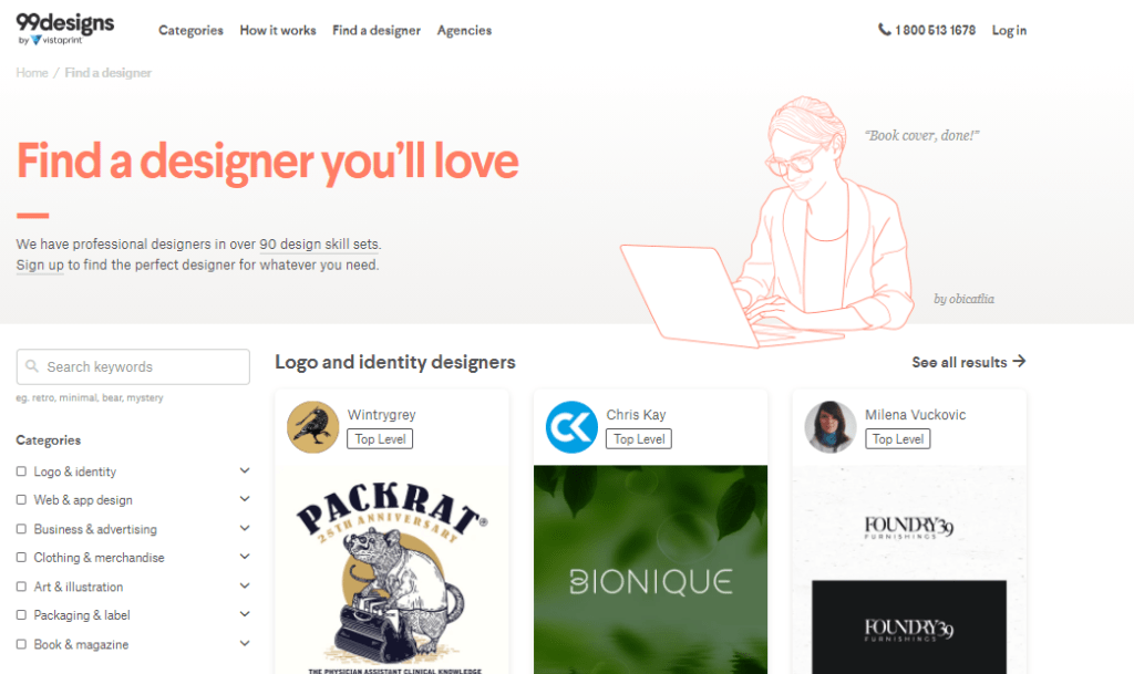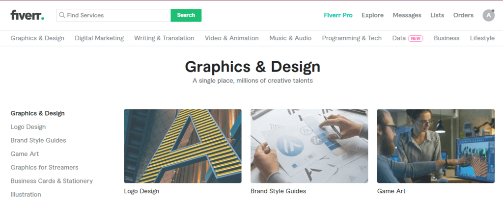 Fiverr is a job board and a service provider. Choose the type of design you want and select the designer. You’ll find freshers and experienced designers offering their services at different rates.