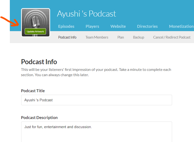 - Add your image and hit the save the podcast button.