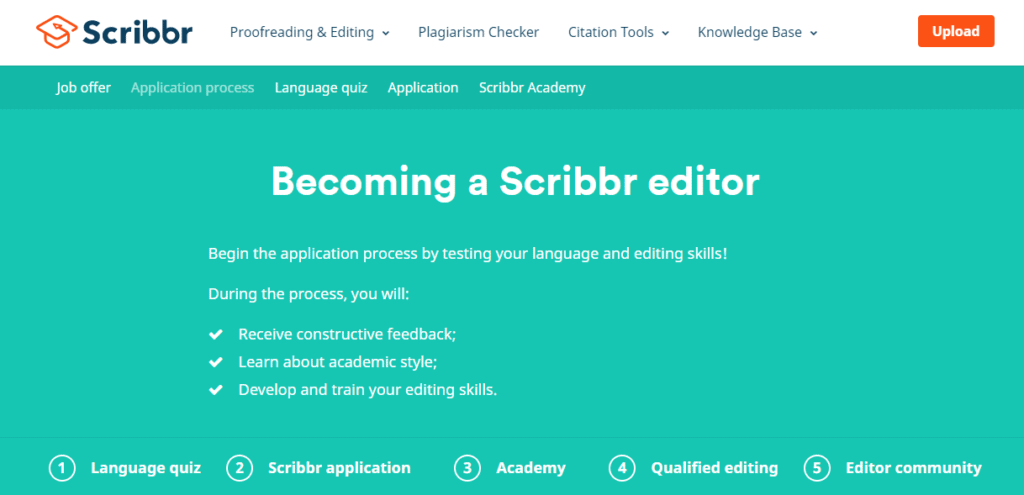 From then on, you will have to register yourself, upload your resume, and answer their 35-editor question test. Sounds tiring, right? However, you are free to use outside sources to complete the test, e.g., MLA, CSE, APA, and Chicago formatting guides.