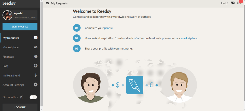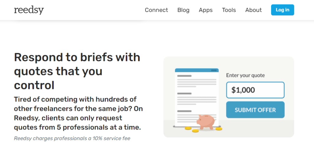 Reedsy connects professionals to clients. Once you sign up, you can instantly connect with clients and respond with quotes. As a professional offering service, Reedsy levies a 10% service fee.