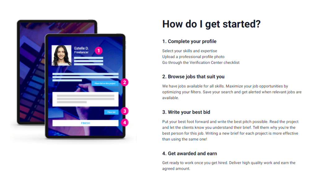 I like the idea of being able to sift through jobs by adding the pay range. Another exciting thing is that you can enter into contests which are projects with strict deadlines posted by clients. Think of it as a technical interview. They start from $8 an hour and can go up to $191.