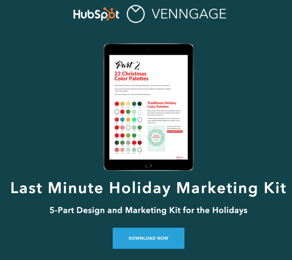 Another form of co-marketing might involve a joint promotion of a lead magnet. It helps both the brands access new audiences. For instance, HubSpot and Venngage partnered to promote the holiday marketing kit.