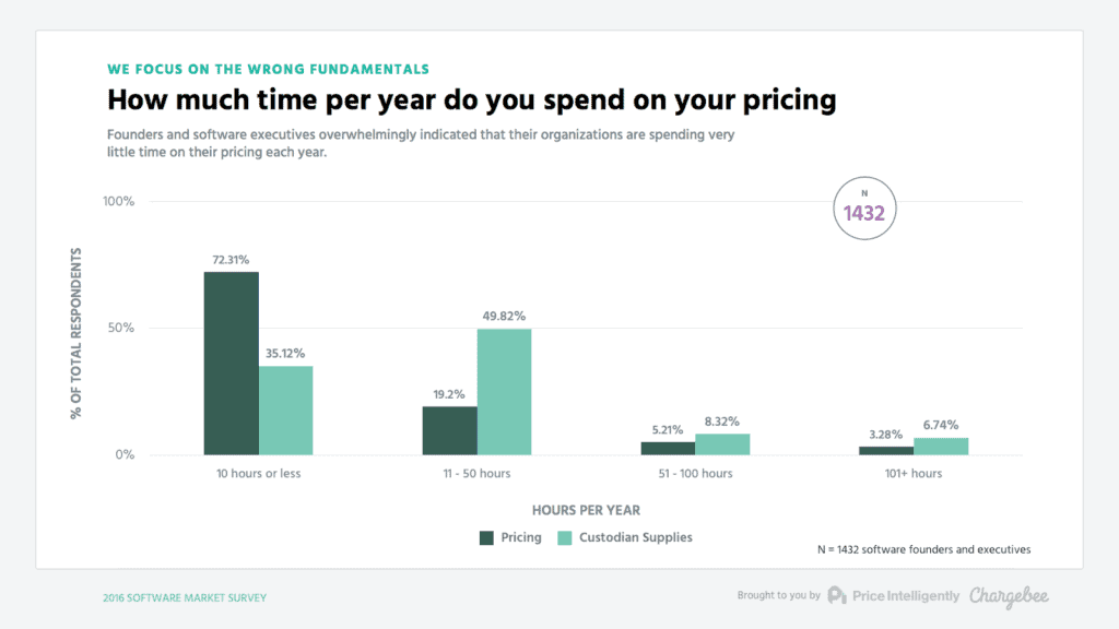 In a study of 6,452 SaaS companies, Charegbee found that on average we’re spending only 12 hours in the entire history of business on pricing. It’s unacceptable in a SaaS model because pricing plays a key role in converting trial users into customers.