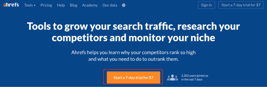 You can also offer a “free trial” of your product directly to the visitors that come from your content marketing and SEO efforts. That’s what Ahrefs does. They don’t collect email addresses anywhere on their blog and directly try to convert visitors into PQL.
