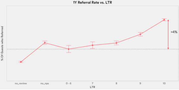 How can your SaaS business get your users to close new deals for you? Begin with checking your Net Promoter Score (NPS). It’s an accurate metric to find if your customers find your brand worth promoting. Airbnb found that a higher NPS corresponds with higher rebooking and referral.