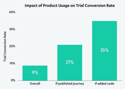 For example, Autopilot found that the key events that drove up their activation rates were: publishing a journey and adding the tracking code for their product. The Autopilot team aligned their product experience to nudge trailers (through in-app messages) to complete these activities.