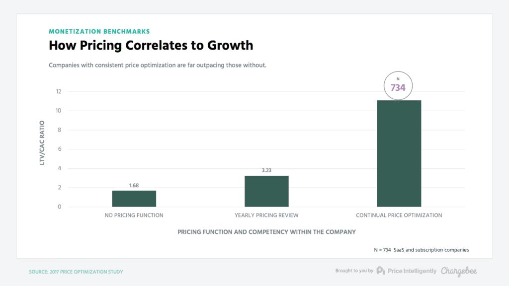 It’s not a surprise that SaaS companies that devote time on optimizing their pricing have six-times as high LTV/CAC ratio than companies that don’t.