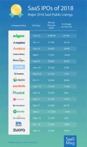 1. With 16 major high-growth software players going public, 2018 is touted as the year SaaS went public.