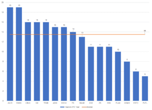 2. While the scale of these companies varies widely, it took a median of 14 years for these companies to go from founding to their IPO year.