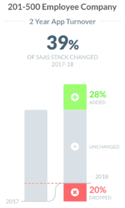 1. The tech industry has the highest turnover rate at 13.2%, but guess who has a higher turnover? It’s SaaS apps. As per Blissfully, between 2017 to 2018, the typical mid-sized company changed 39% of their SaaS software.