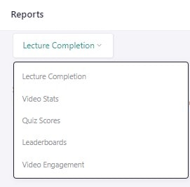 Teachable allows you to analyze multiple reports like Lecture completion, Quiz Scores, Video Engagement, etc. The “Video Stats” report at Teachable gives you the play rate, visitors, engagement rate, etc.