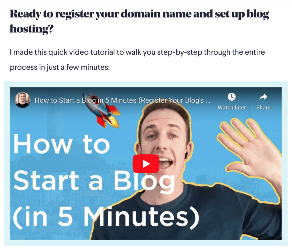 Ryan Robinson embedded a video tutorial in his ultimate guide to starting a blog. As you can see, it’s also a great way to promote your YouTube channel.