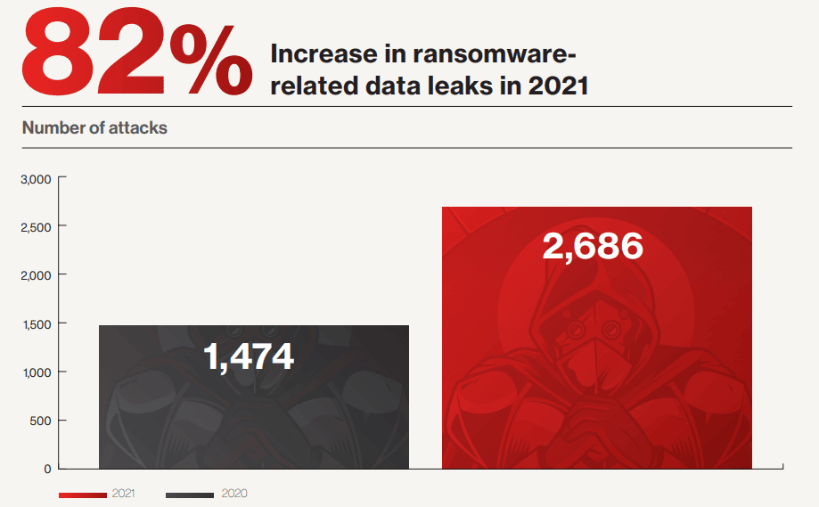 2. There was an 82% increase in ransomware-related data leaks in 2021 as compared to 2020. (CrowdStrike)