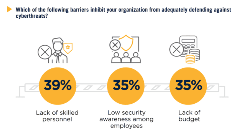 4. Lack of skilled personnel seems to be the No.1 reason that organizations cannot defend against malicious attacks. (Fortra)