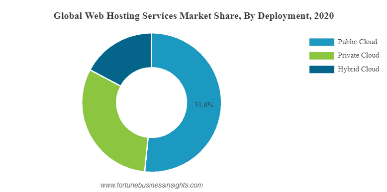 6. The public cloud had the biggest share in terms of web hosting deployment type. (Fortune Business Insights)