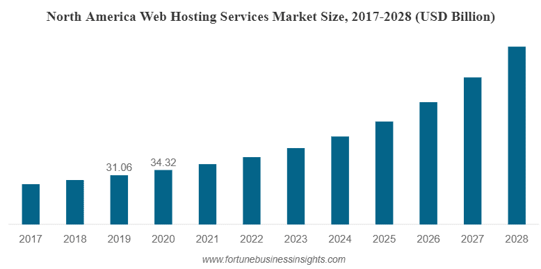 1. The global web hosting services market is projected to grow from USD 83.99 billion in 2021 to USD 267.10 billion in 2028 at a CAGR of 18.0%. (Fortune Business Insights)