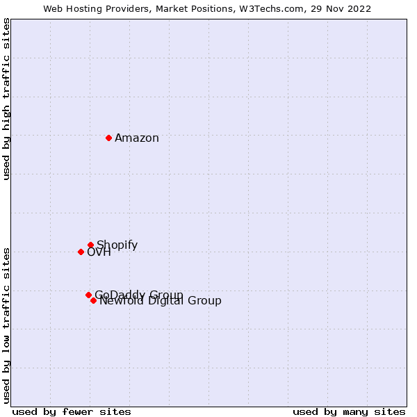 1. Amazon Web Services is mostly used by high-traffic sites. (W3Techs)