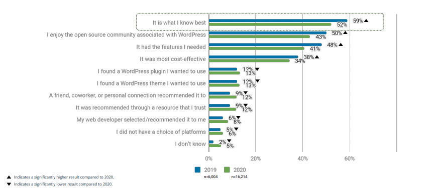 1. More than half (52%) of WordPress users choose it because it’s what they know best. (WordPress 2020 Annual Survey)