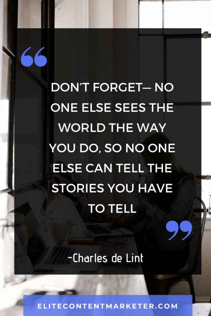 54. “Don’t forget— no one else sees the world the way you do, so no one else can tell the stories you have to tell.” -Charles de Lint
