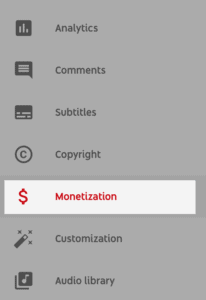 To check where you currently stand in your path towards becoming a YouTube Partner, login to YouTube Studio. Then scroll down from the left sidebar to the “Monetization” tab.
